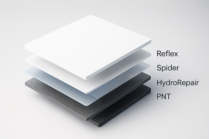 A liquid material that transforms into a cohesive elastic membrane; it follows details, bridges cracks, and creates a seamless waterproof shield.