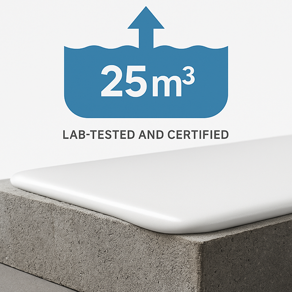 Certified resistance up to 25 m water column (corresponds to real conditions for sealing swimming pools and strong static water pressure).